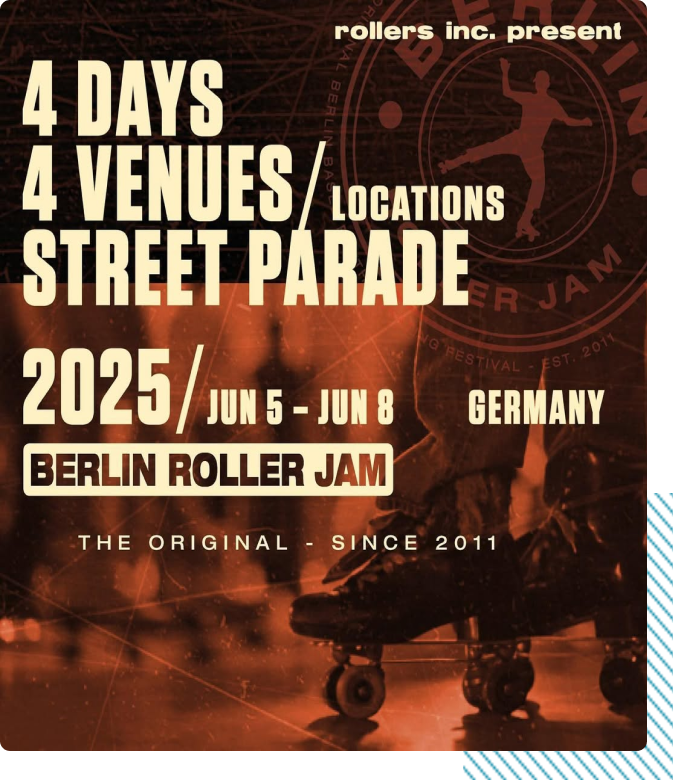 BERLIN ROLLER JAM is the orginal berlin based roller skate jam, each and every year at pentecost weekend, since 2011.