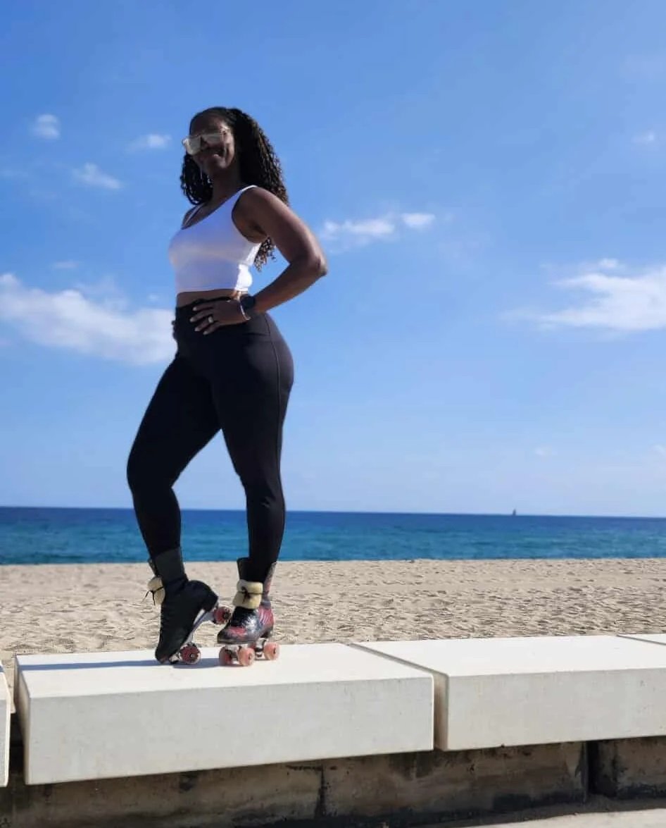 Mohawk moves with a presence that speaks before words ever do, the kind of woman whose grace fills the room and whose rhythm tells a story. With over 20 years of rhythm and ballroom skating, she blends elegance, strength, and soul in every glide. Her purpose is to inspire women and skaters alike to embrace confidence, express freedom, and move with intention. Through UnitedSk8Squad, she continues to build a community that celebrates style, unity, and the power of graceful movement.